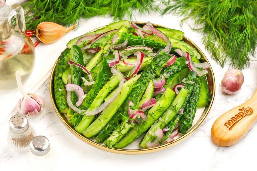 Самый быстрый вариант приготовления вкусной овощной закуски из огурцов — перед вами! За полчаса огурчики получаются сочными, пропитанными всеми вкусами и ароматами, но при этом остаются хрустящими!