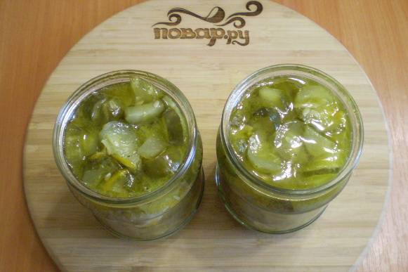 Разложите по стерильным банкам — и закатайте. Из данного количества продуктов получается 3 банки литровые и 1 пол-литровая.