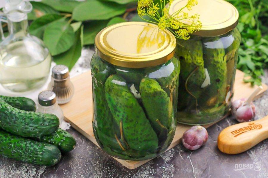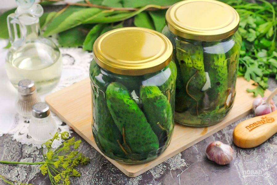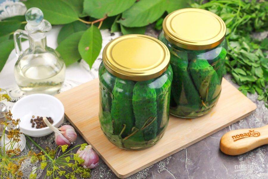 Спустя указанное время огурцы начнут или полностью поменяют свой цвет и емкость остынет. Укутывать банки пледом или одеялом не нужно. Отнесите их на хранение в кладовую и извлекайте по мере необходимости. Приятного вам аппетита!