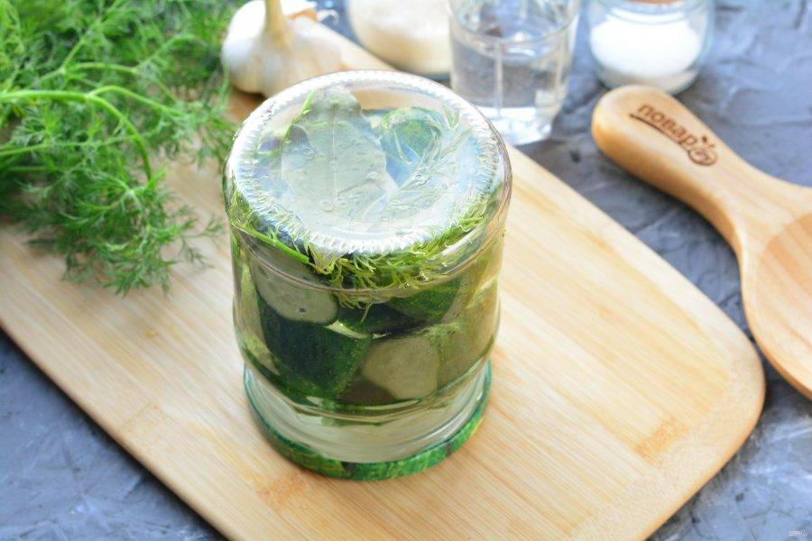 Закатайте банки с огурцами крышками, переверните вверх дном, чтобы проверить герметичность. Утеплите закатку и дайте остыть в таком виде.