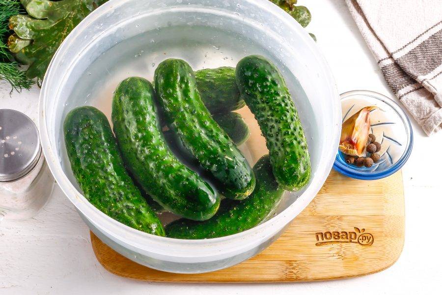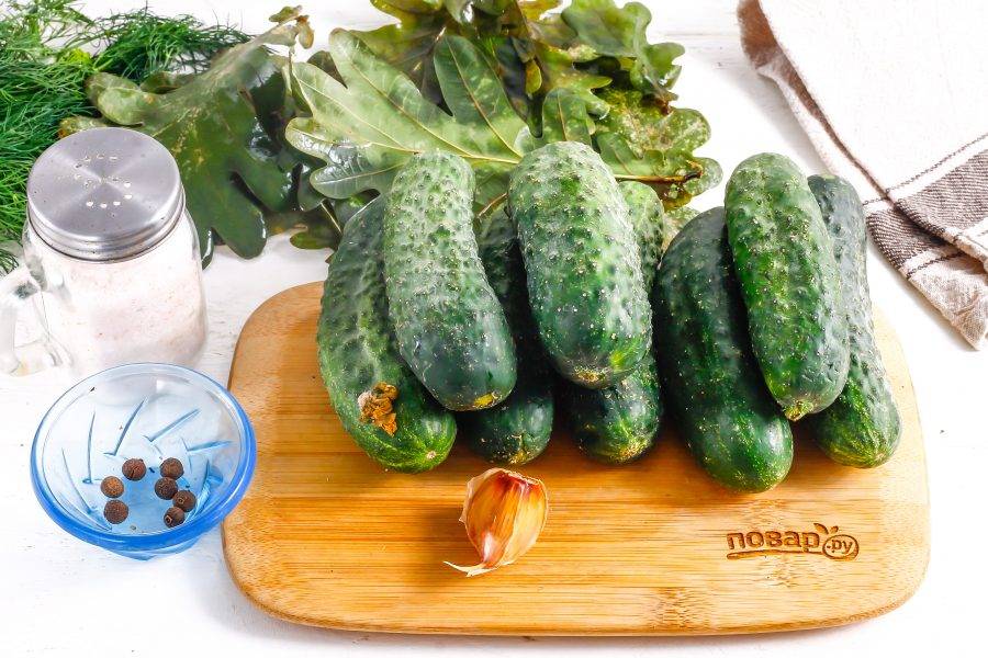 Подготовьте указанные ингредиенты. Огурчики лучше всего выбирать мелкие — они быстрее просолятся.