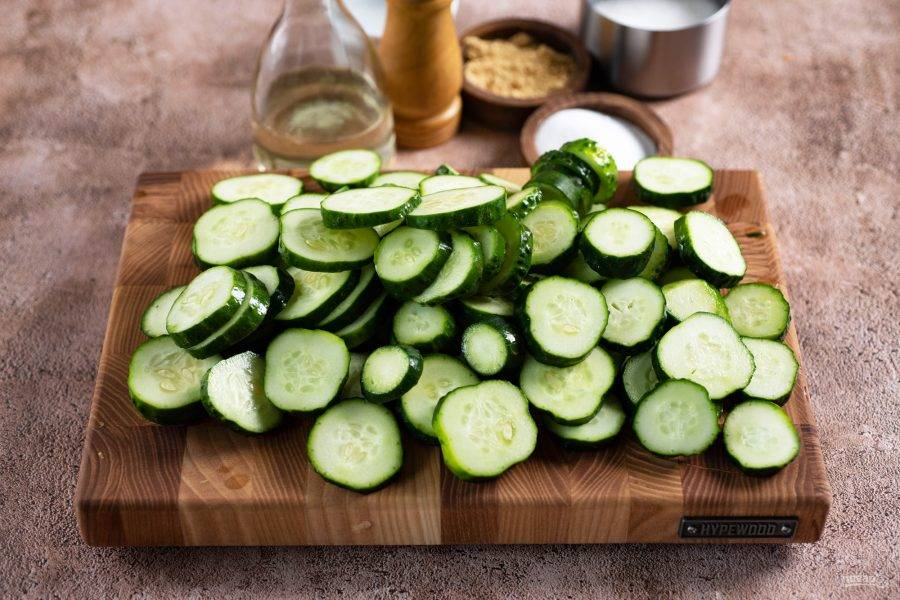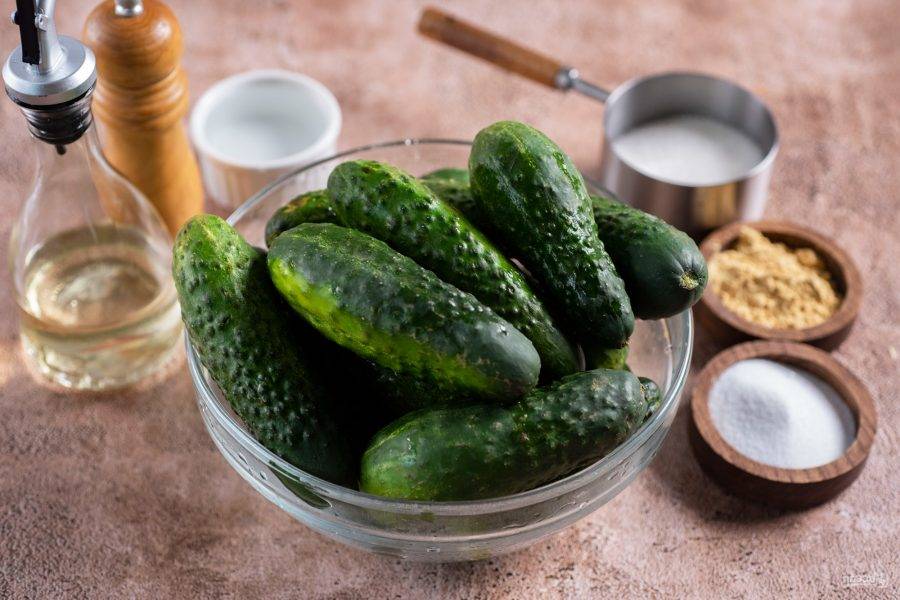 Все ингредиенты выложите на стол перед началом приготовления. Огурцы тщательно вымойте.