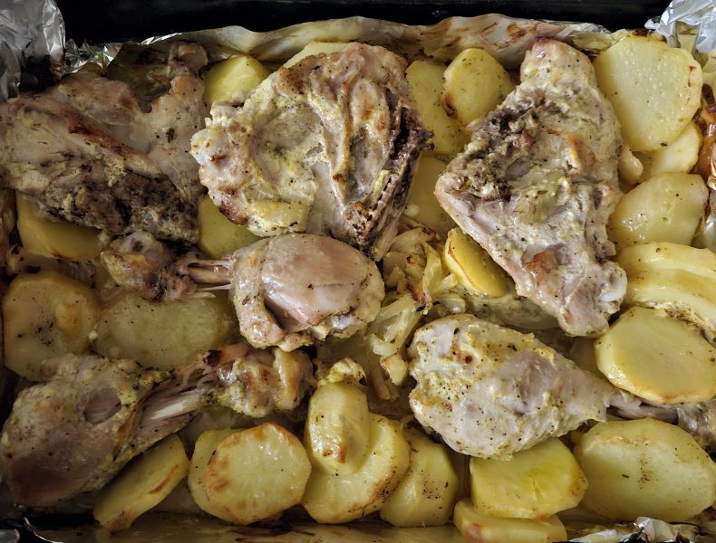 4. Помещаем и курицу, и картофель в рукав для запекания. Внимательно ознакомьтесь с инструкцией, не забудьте сделать пару проколов в рукаве сверху.