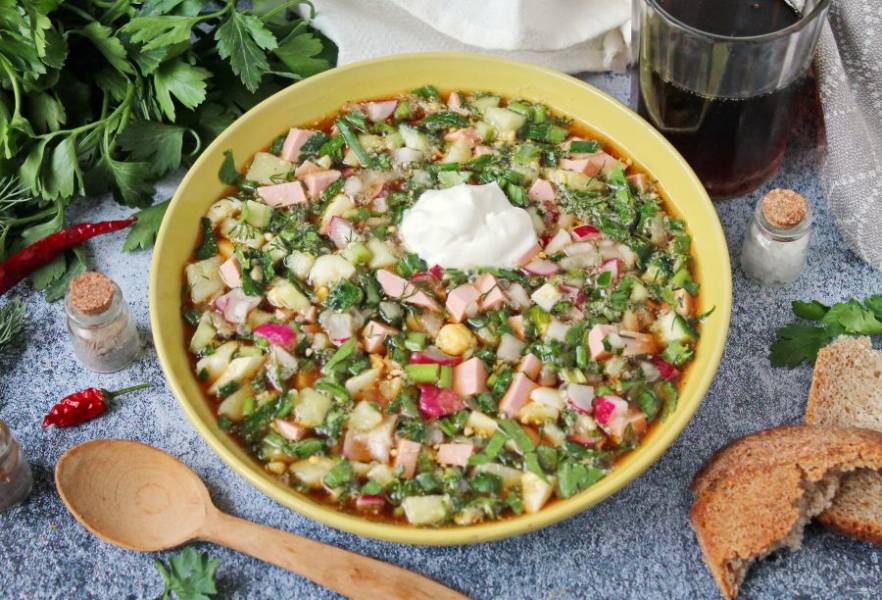 Нет ничего лучше в жару, чем съесть на обед окрошку. Этот легкий, освежающий суп готовится очень просто и быстро. Если добавить в него ядреную горчицу, он приобретает совершенно новый вкус и аромат.
