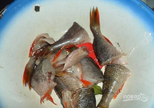 Рыбу очистите от чешуи. Удалите головы и кишки. Нарежьте тушки крупными кусками. Всё тщательно промойте.