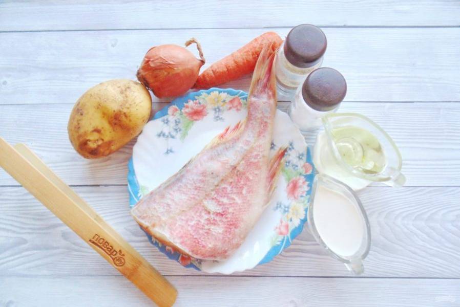Подготовьте ингредиенты для приготовления окуня в горшочке.