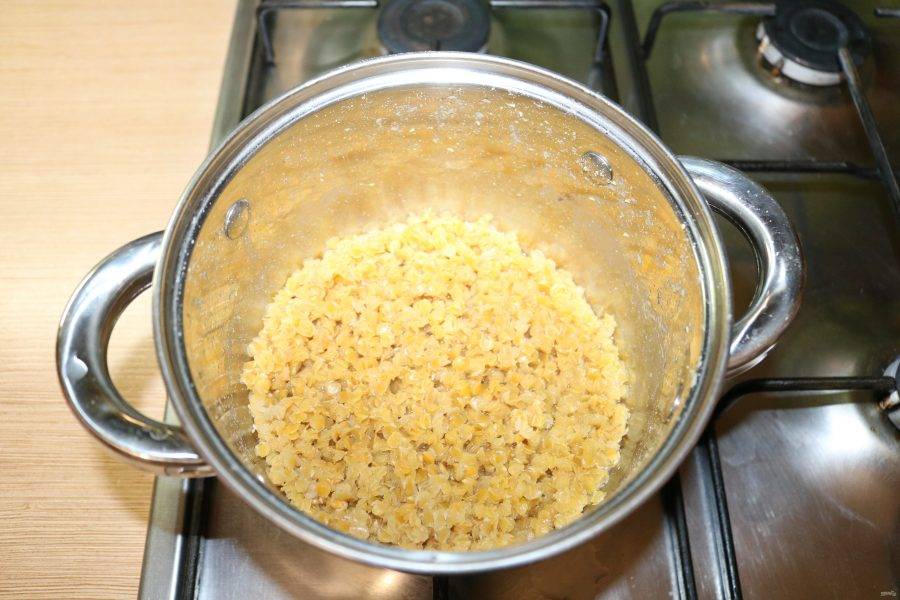 Промойте чечевицу, залейте 200 мл воды. Поставьте на огонь. Посолите по вкусу. Варите 15 минут.
