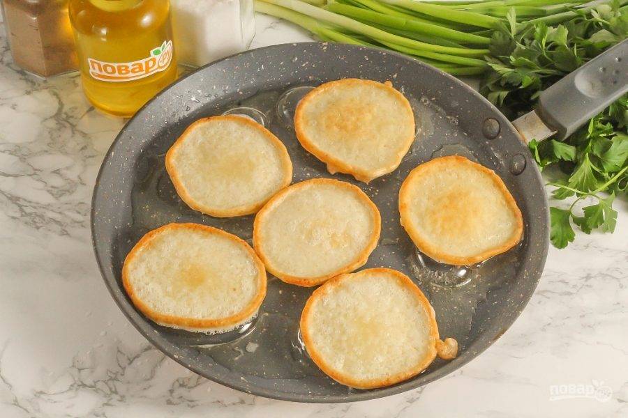 Оставшееся растительное масло разогрейте на сковороде и выложите в него приготовленное тесто с помощью столовой ложки. Обжарьте оладьи по 1-2 минуты с каждой стороны до румяности.