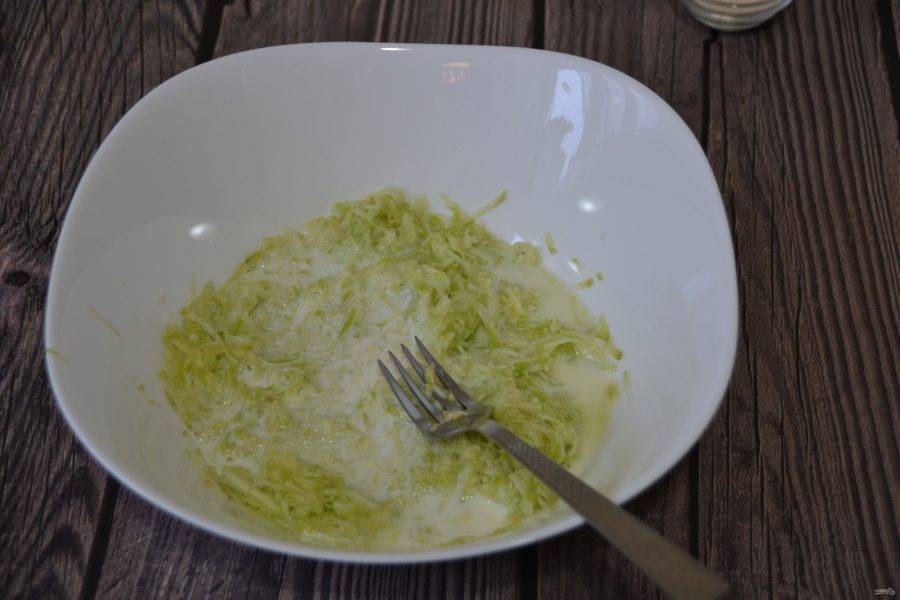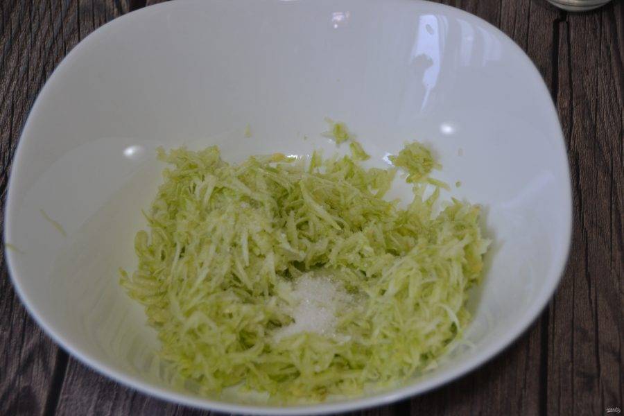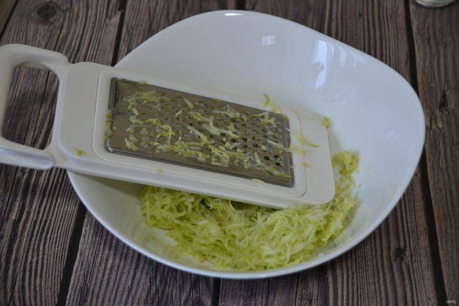 Помойте кабачок, натрите на терке. Если кабачок молодой, то можно натереть прямо со шкуркой.