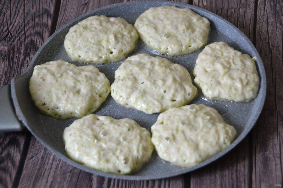 Жарьте оладьи с обеих сторон на рафинированном растительном масле.