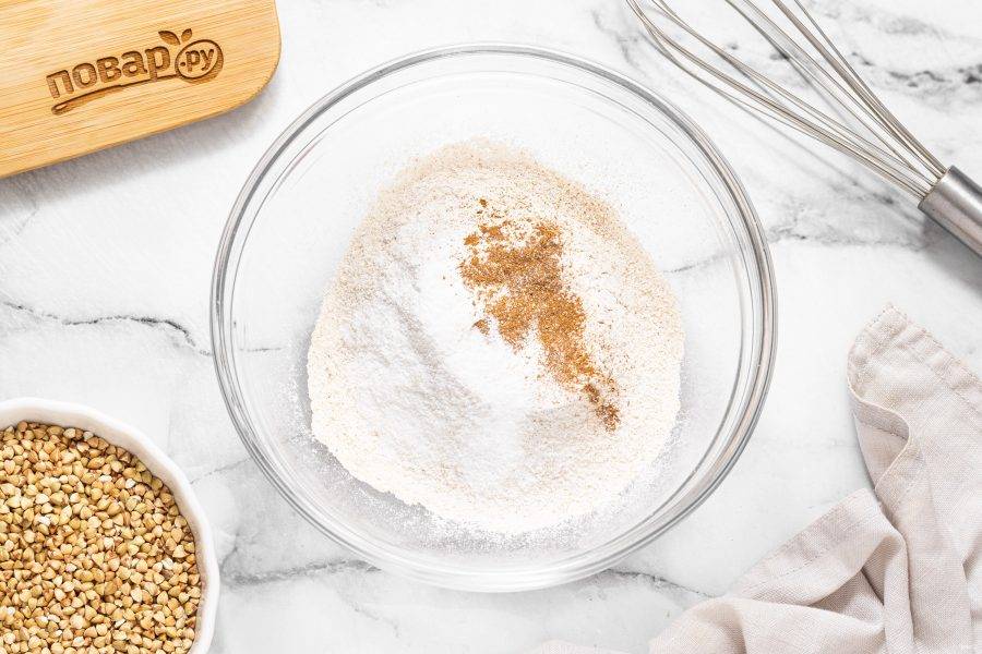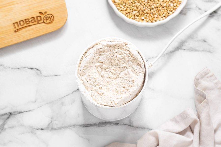 Измельчите в кофемолке зеленую гречку до консистенции муки.