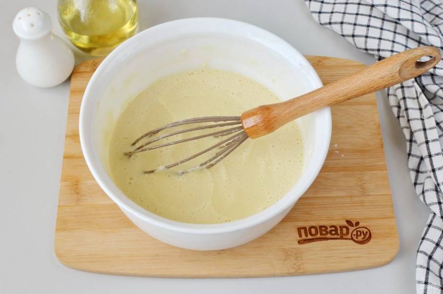 Хорошо венчиком перемешайте тесто. Густота средняя.