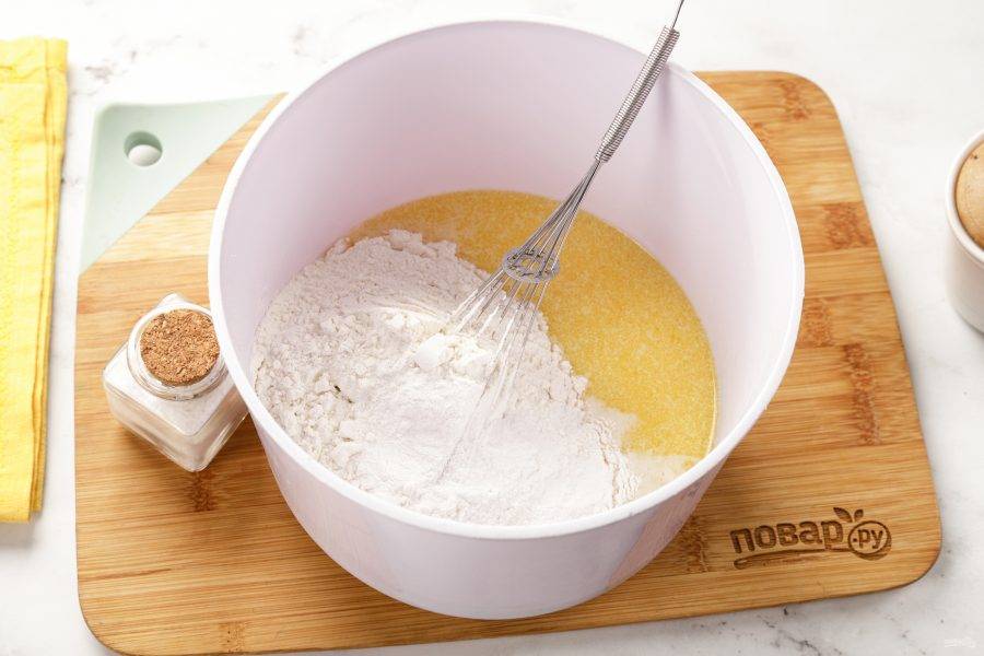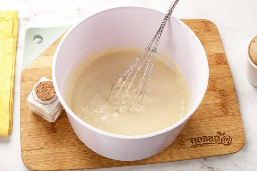Муку лучше добавлять частями, так как её может уйти чуть больше или меньше. Готовое тесто должно быть по консистенции довольно густым, как сметана.