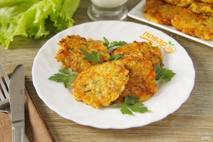 Разогрейте на сковороде масло и выкладывайте получившуюся массу при помощи столовой ложки, формируя оладьи.