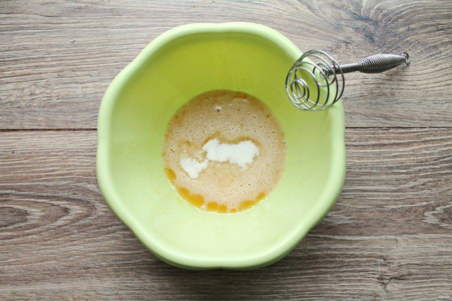 Добавьте в яйца ванильный сахар и соль, перемешайте.
