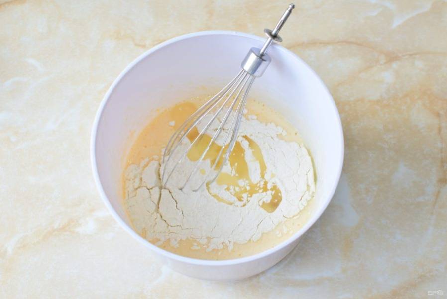 Добавьте растительное масло. Готовое тесто должно быть достаточно густое.