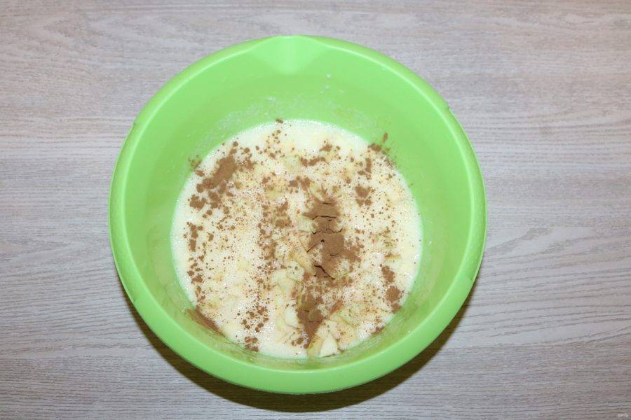 Яблоко очистите от шкурки и семян, нарежьте кубиками, добавьте в тесто.