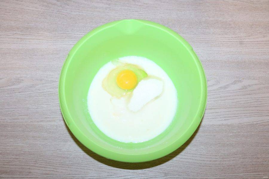 Добавьте яйцо и сахар. Перемешайте.