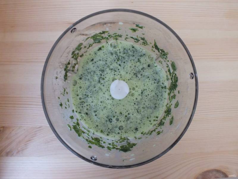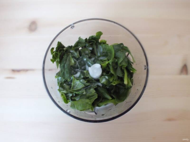 Листья шпината выложите в блендер, добавьте половину количества ряженки.