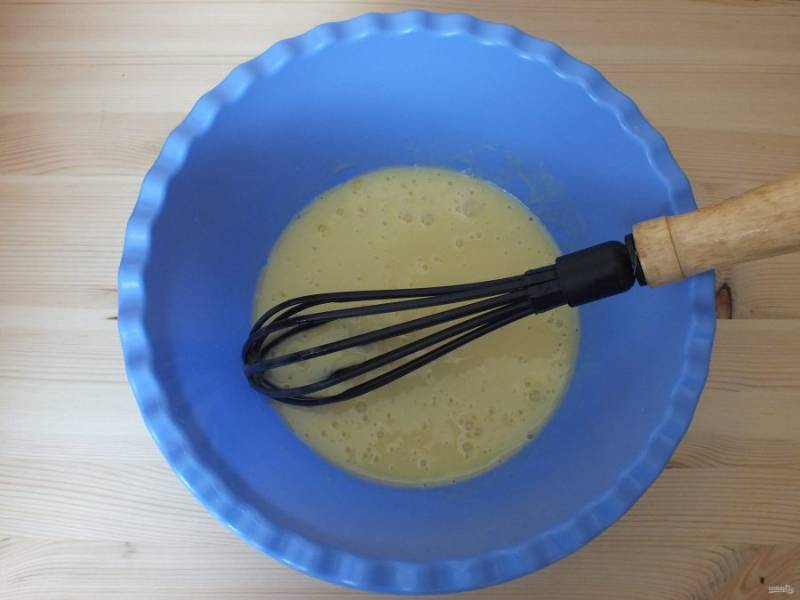 Оставшуюся ряженку смешайте с яйцами и сахаром.