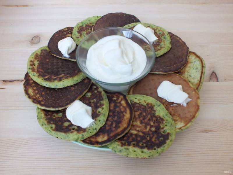 только изумрудным цветом, но и отменным вкусом. Оладушки готовятся очень быстро, что немало важно.