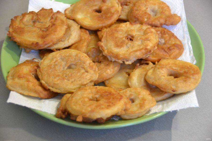 Обжаренные оладушки выкладывайте на бумажное полотенце, чтобы удалить остатки масла.