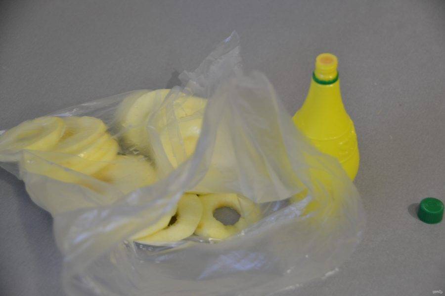 Чтобы яблоки не потемнели, переложите их в пакет, сбрызните лимонным соком и встряхните.