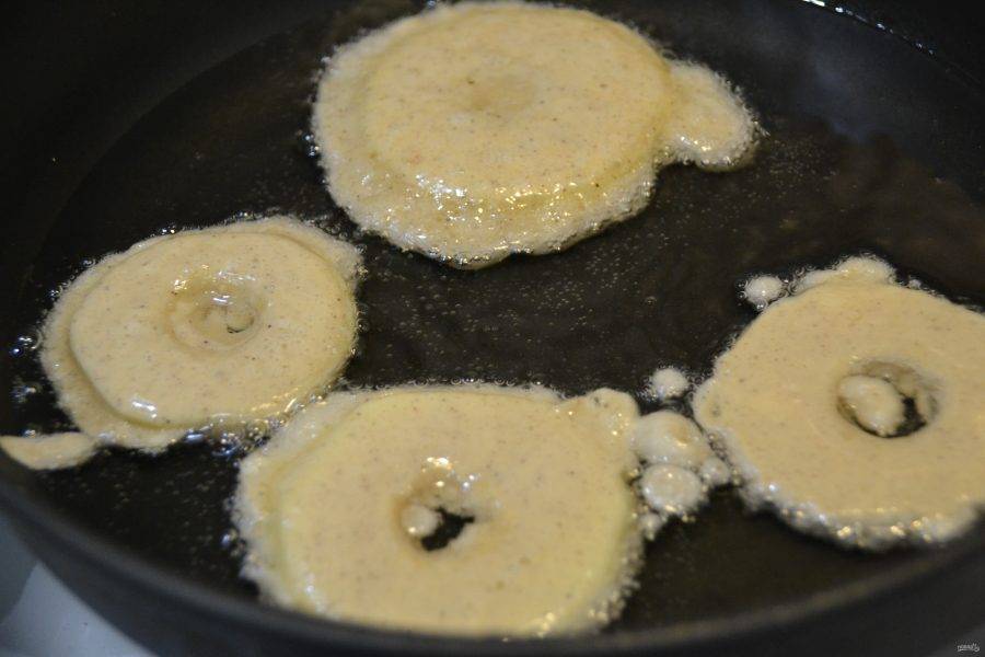 На сковороду налейте достаточное количество растительного масла, дождитесь, когда оно хорошо прогреется и жарьте до готовности.