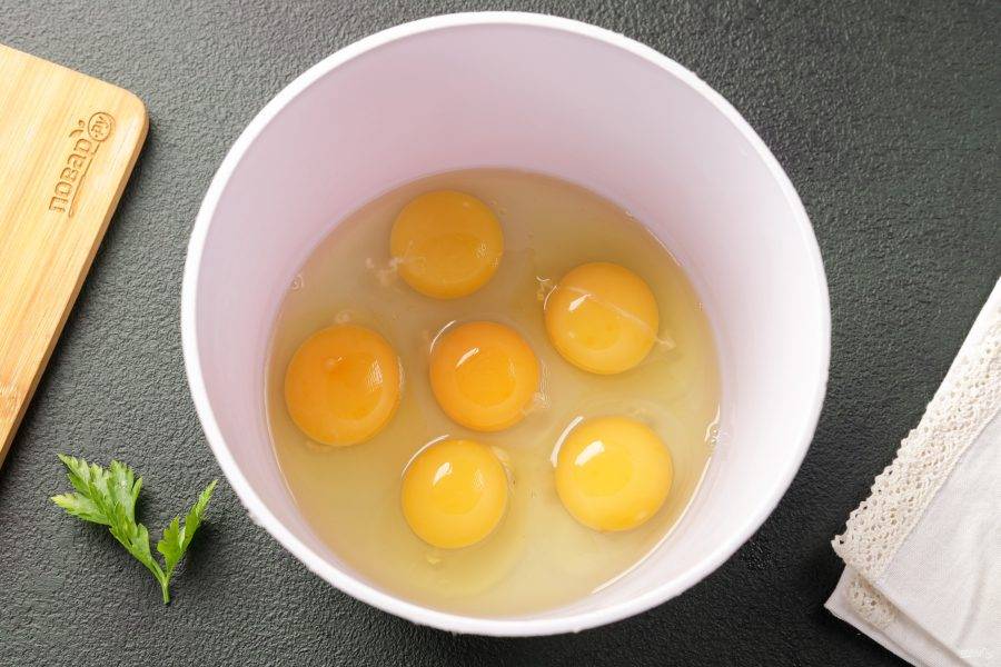 Разбейте яйца в глубокую миску.