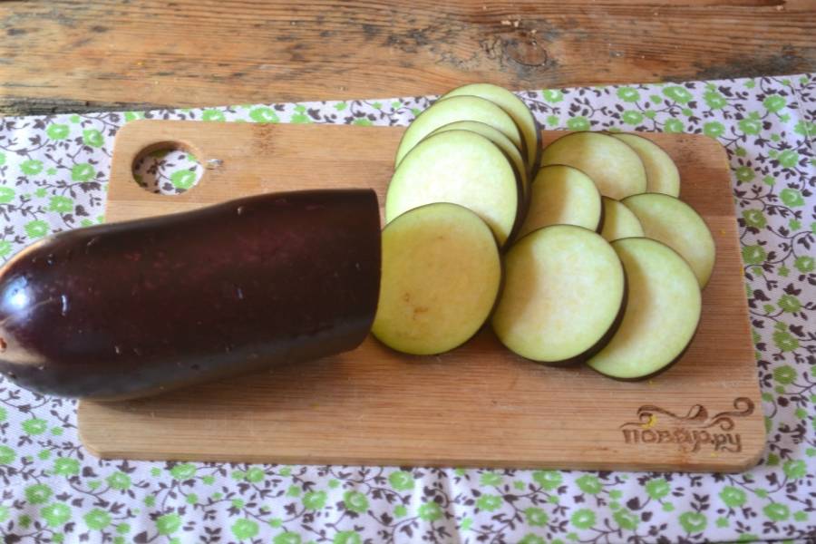 Баклажаны порежьте кружочками толщиной 3-4 см.