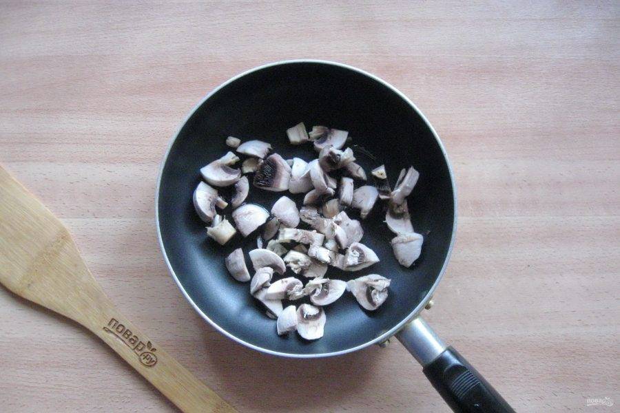 Шампиньоны очистите, помойте и нарежьте. Обжарьте в сливочном масле на сковороде.