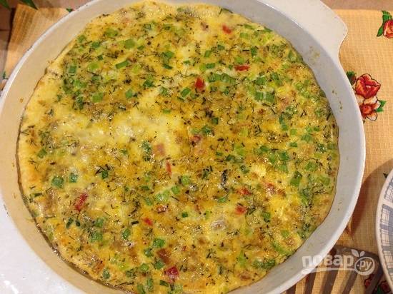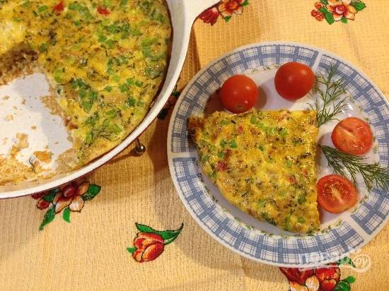 Запекаем в разогретой до 180 градусов духовке минут 30. Омлет будет пышным, но после извлечения из духовки немного осядет.