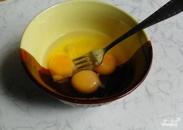 4. Отдельно в глубокую миску разбейте яйца, присолите и взбейте вилкой. Не нужно взбивать яйца до пены, лишь слегка.