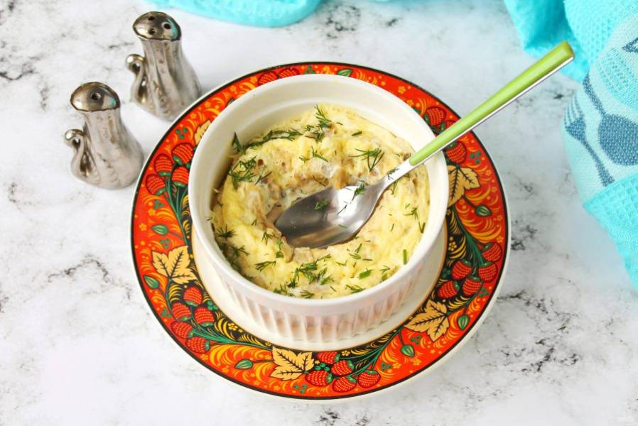 Полученную массу перелейте в смазанную маслом формочку для запекания.
