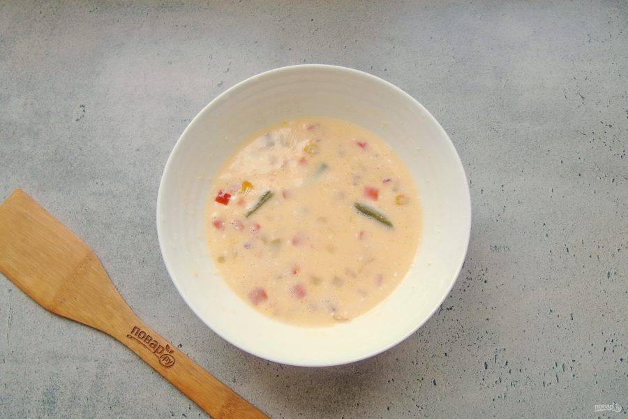Подготовьте ингредиенты для приготовления омлета с мексиканской смесью.