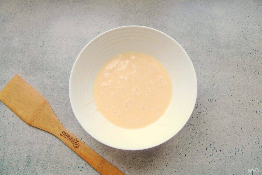 В миску разбейте 3 крупных или 4 небольших яйца.