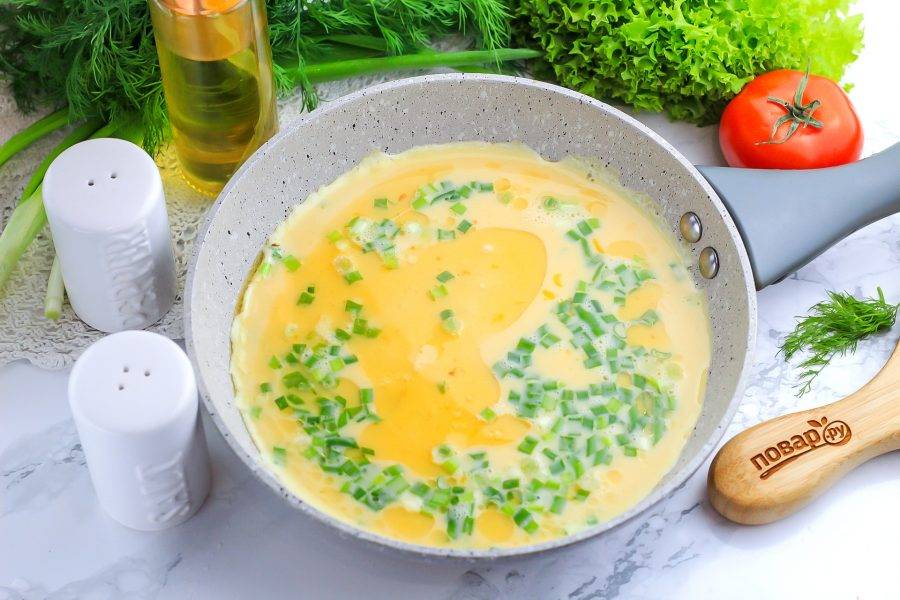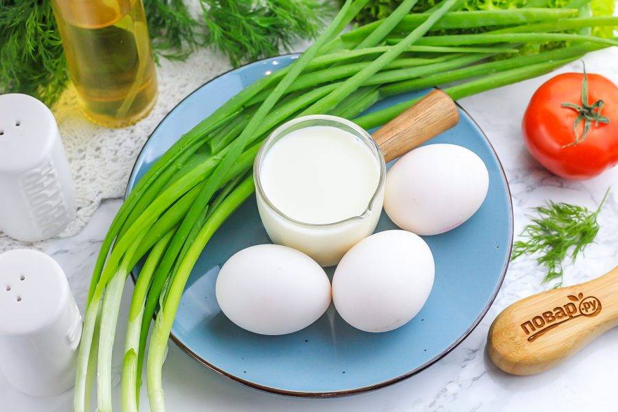 Ароматный омлет с зеленым луком — идеальное блюдо для завтрака или перекуса. Готовится оно быстро и просто, а съедается с превеликим аппетитом! Обязательно угостите утром омлетом своих родных.