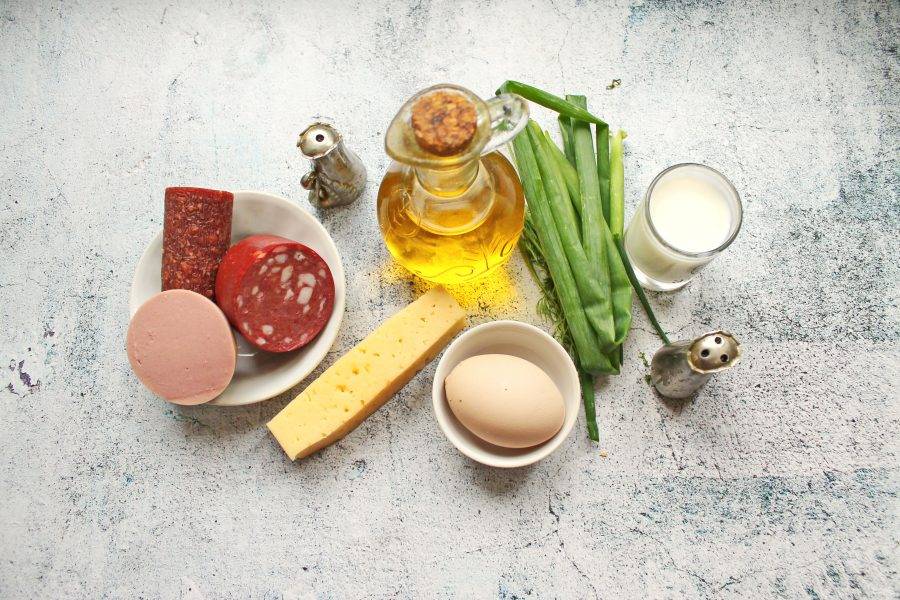 Даже обычный омлет, приготовленный в духовке можно подать красиво и разнообразить при помощи разных добавок. Предлагаю вариант с добавлением сыра, колбасы и зеленого лука. Берите на заметку!