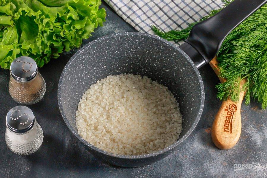 Рис тщательно промойте в воде 4-5 раз и высыпьте в казан или в ковш с антипригарным дном. Влейте горячую воду и отварите примерно 15 минут. Затем перемешайте и оставьте под крышкой набухать, выключив нагрев. Имейте в виду, что рис для онигири отваривается без специй и вкусовых добавок!