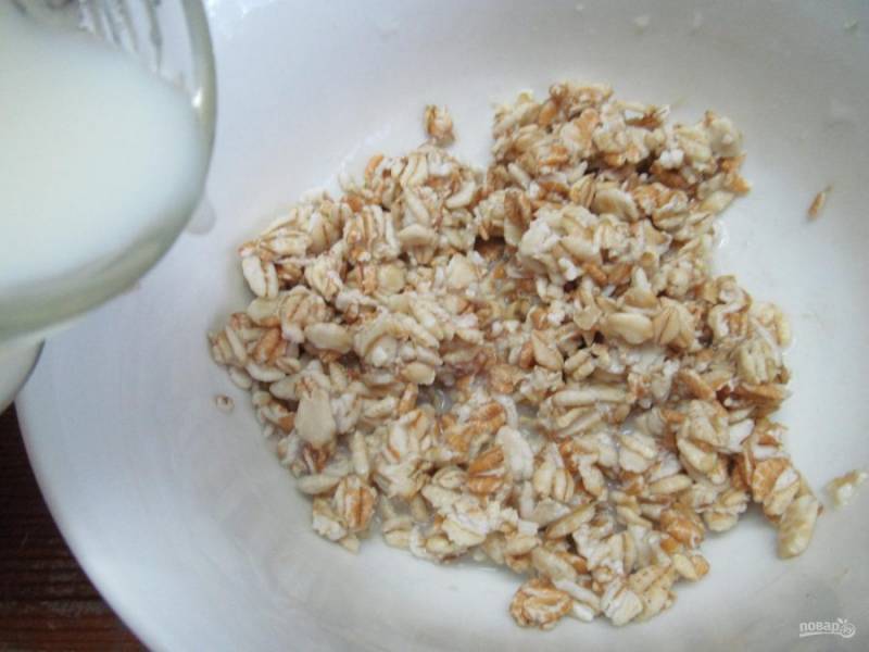 Теплым молоком залейте хлопья 5 злаков на 5-10 минут.