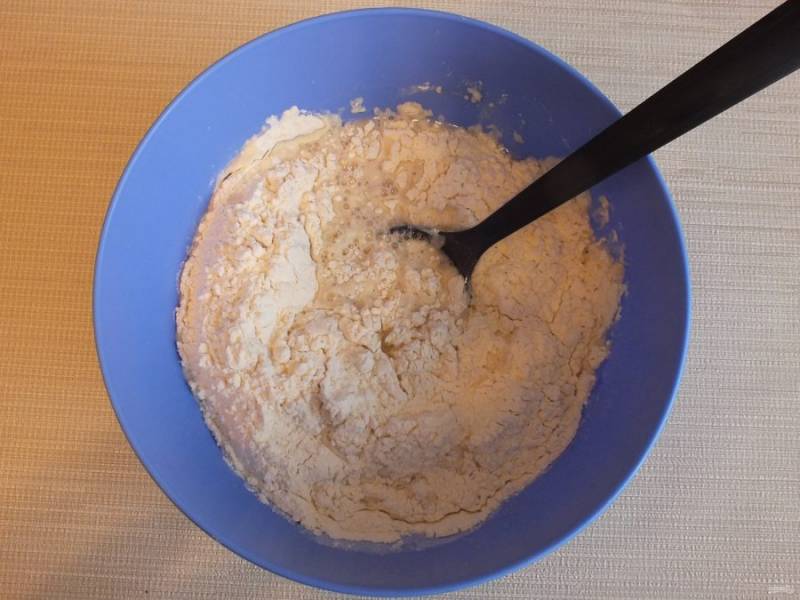 Тесто имеет тягучую, жидкую консистенцию. Накройте полотенцем и поставьте в теплое место на 1 час.