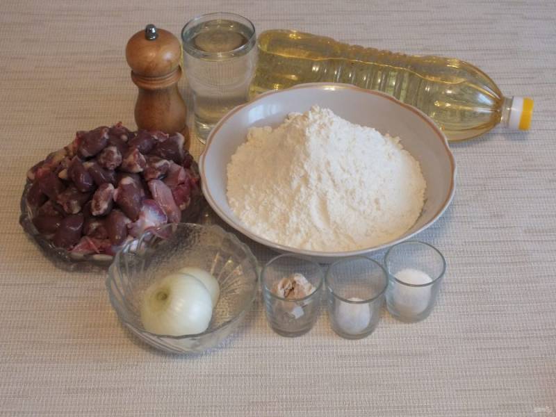 Пока подходит тесто, приготовьте начинку. Куриные сердечки и желудки промойте и пропустите через мясорубку со средней решеткой.