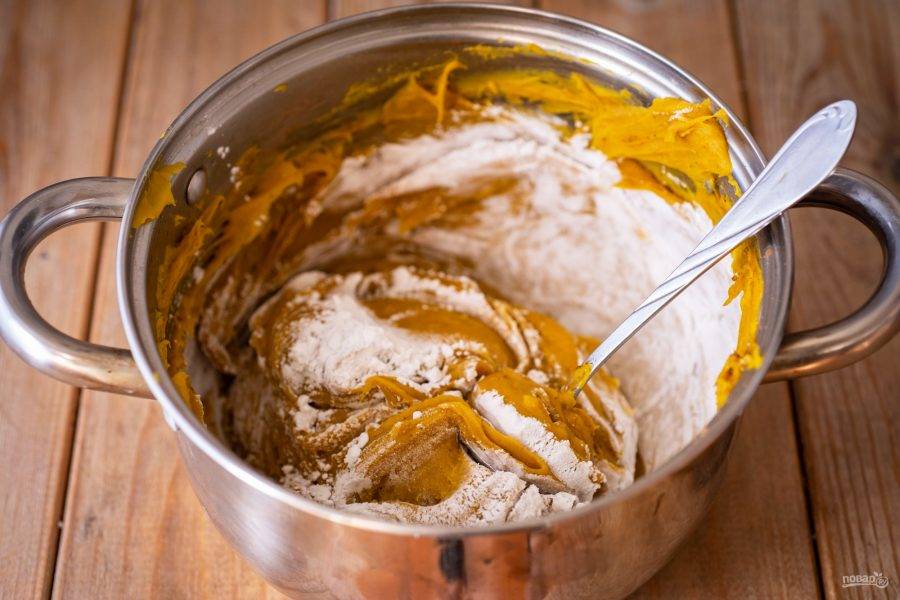 - Сахар 120 грамм 80 грамм — в тесто, 40 грамм — в тыквенную начинку