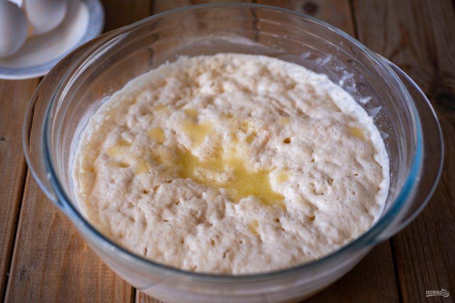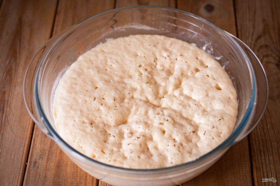 Через час тесто заметно поднялось и готово к дальнейшей работе.