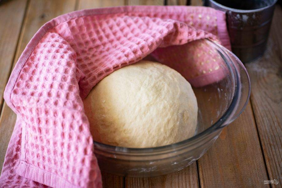 Тесто округлите в миске, накройте его кухонным полотенцем и оставьте на столе подходить в течение 1 часа.