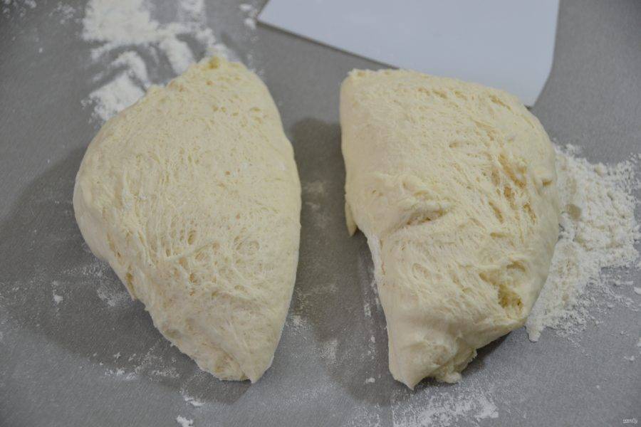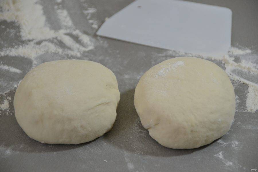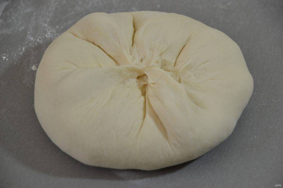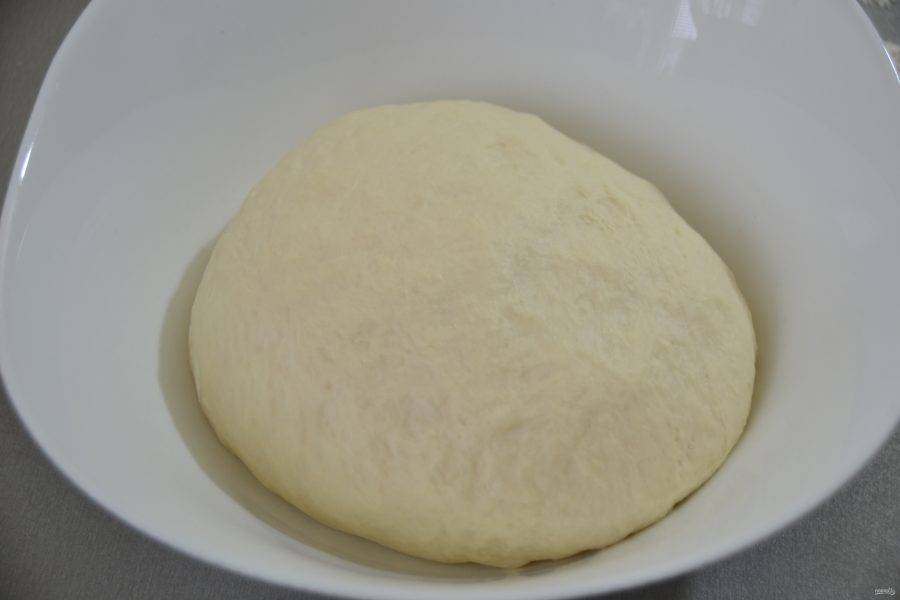 Замесите тесто и вымесите руками 5-7 минут. Закройте пленкой и оставьте на расстойку на 30-40 минут.