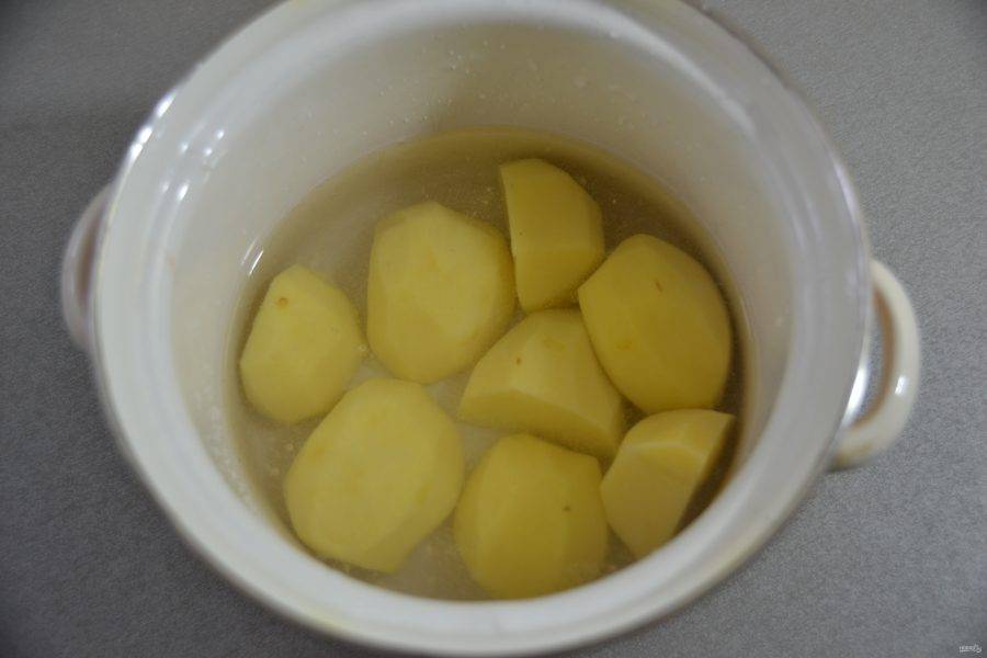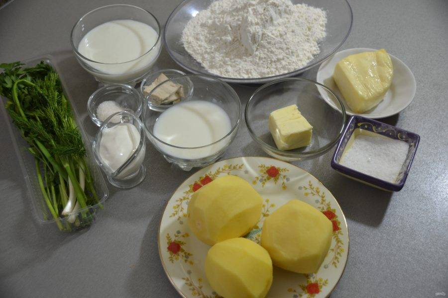 Раскатайте тесто в лепешку, в центр выложите картофельную начинку.
