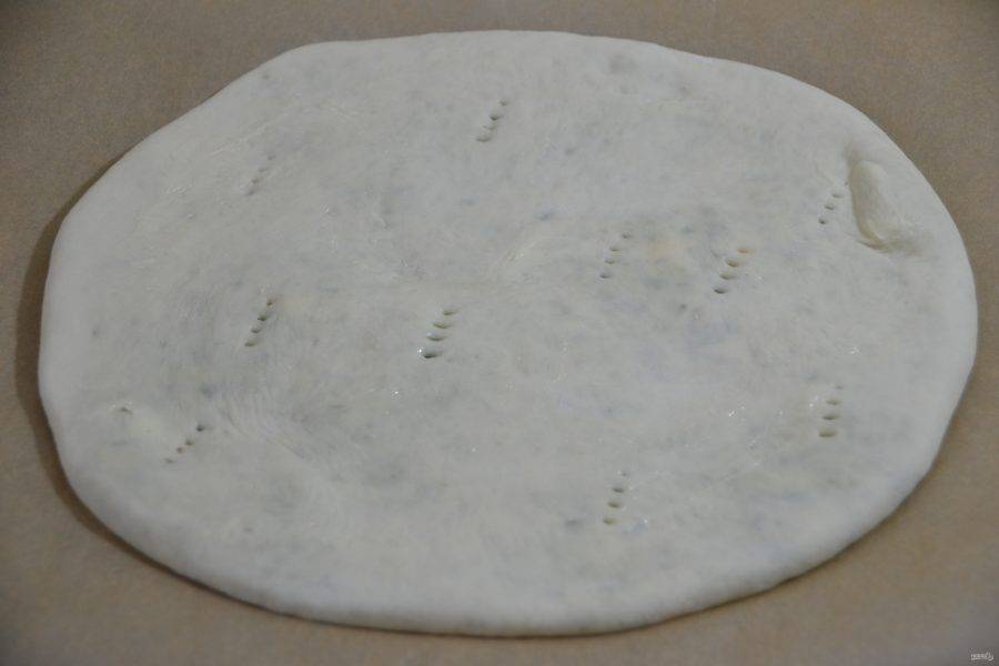 Раскатайте в лепешку. Выпекайте в духовке разогретой до 200 градусов в течение 10-15 минут.