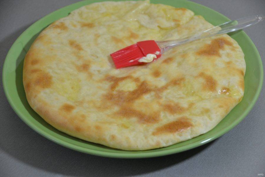 Испеченную лепешку щедро смажьте сливочным маслом.