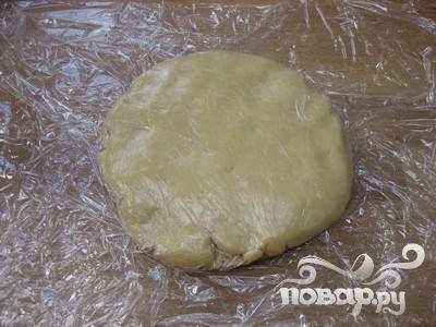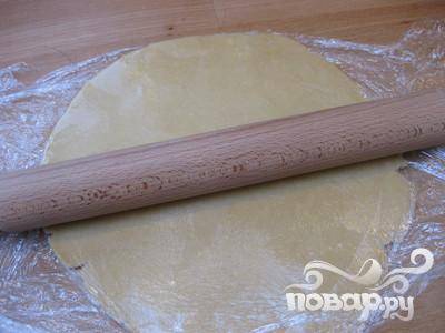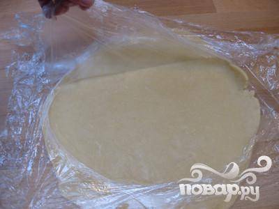 Сформируйте плоские лепёшки из теста и уложите его между двумя большими плёнками. Поместите в холодильник на 30 минут.